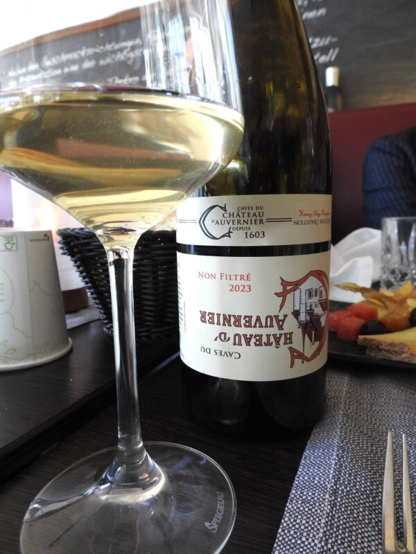 Beim zweiten Wein handelt es sich um einen Vertreter aus der Schweiz, der schon optisch auf sich aufmerksam macht. Einerseits ist das zum Teil umgekehrt aufgedruckte Etikett ungewöhnlich, aber auch das Erscheinungsbild im Glas erweckt Aufmerksamkeit. Die leichte Trübung des 2023er Château d´Auvernier findet seine Erklärung in der Tatsache, dass es sich um einen unfiltrierten Wein handelt, der sich großer Beliebtheit erfreut. Dieser Weißwein der Rebsorte Chasselas wird von der Familie Grosjean in der AOC Neuchâtel am Neuenburger See produziert und ist in der Nase in Form von feinfruchtigen Aromen wahrnehmbar, die an frische Bananen, gelbe Äpfel und rosa Grapefruit erinnern. Eine facettenreiche Aromatik wird durch die Mineralik und milde Säure des Weines sehr gut zur Geltung gebracht, was zu einem langen und cremigen Nachhall führt.