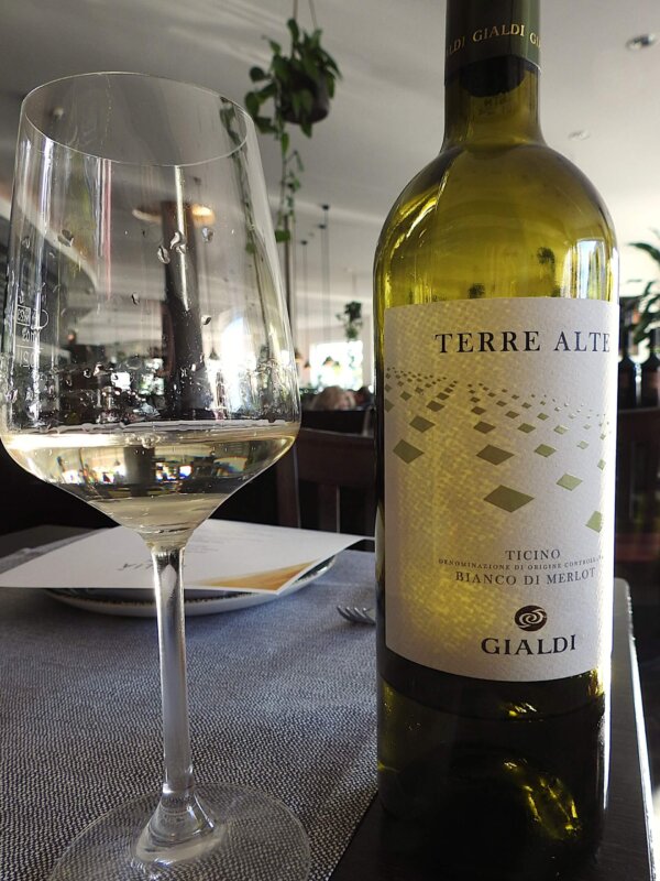 So wurde aus der Not heraus die Idee geboren, den Merlot weiß zu vinifizieren und das Ergebnis wurde von der Kundschaft geschätzt. Innerhalb weniger Jahre wurde der weiße Merlot zu einer echten Spezialität der Region und heute hat dieser Wein im Tessin einen Anteil von 30% an der Gesamtproduktion. Wir haben den Bianco di Merlot Terre Alte vom Weingut Gialdi im Glas, einem Weingut in der Tessiner Gemeinde Mendrisio. Beim Abbeeren der roten Merlot-Trauben wird der klare Most durch selbsttätiges Ablaufen des Saftes gewonnen. Nach einer sehr schonenden Pressung wird der klare Most bei 18-20° Grad in Edelstahltanks ausgegoren. Der leicht strohgelbe Merlot verströmt ein zartfruchtiges Bouquet von Williamsbirne, weißen Pfirsichen, Zitrus- und floralen Noten. Auf der Zunge frisch und fruchtig mit ungewöhnlich viel Schmelz, hinterlässt dieser weiße Merlot einen anhaltenden und mineralischen Abgang.